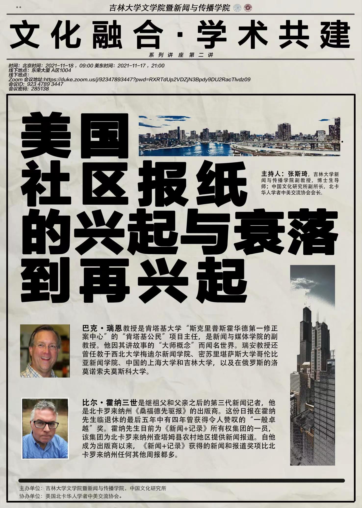 主持人:张斯琦,吉林大学新闻与传播学院副教授,博士生导师;中国文化研究所副所长,北卡华人学者中美交流协会会长。