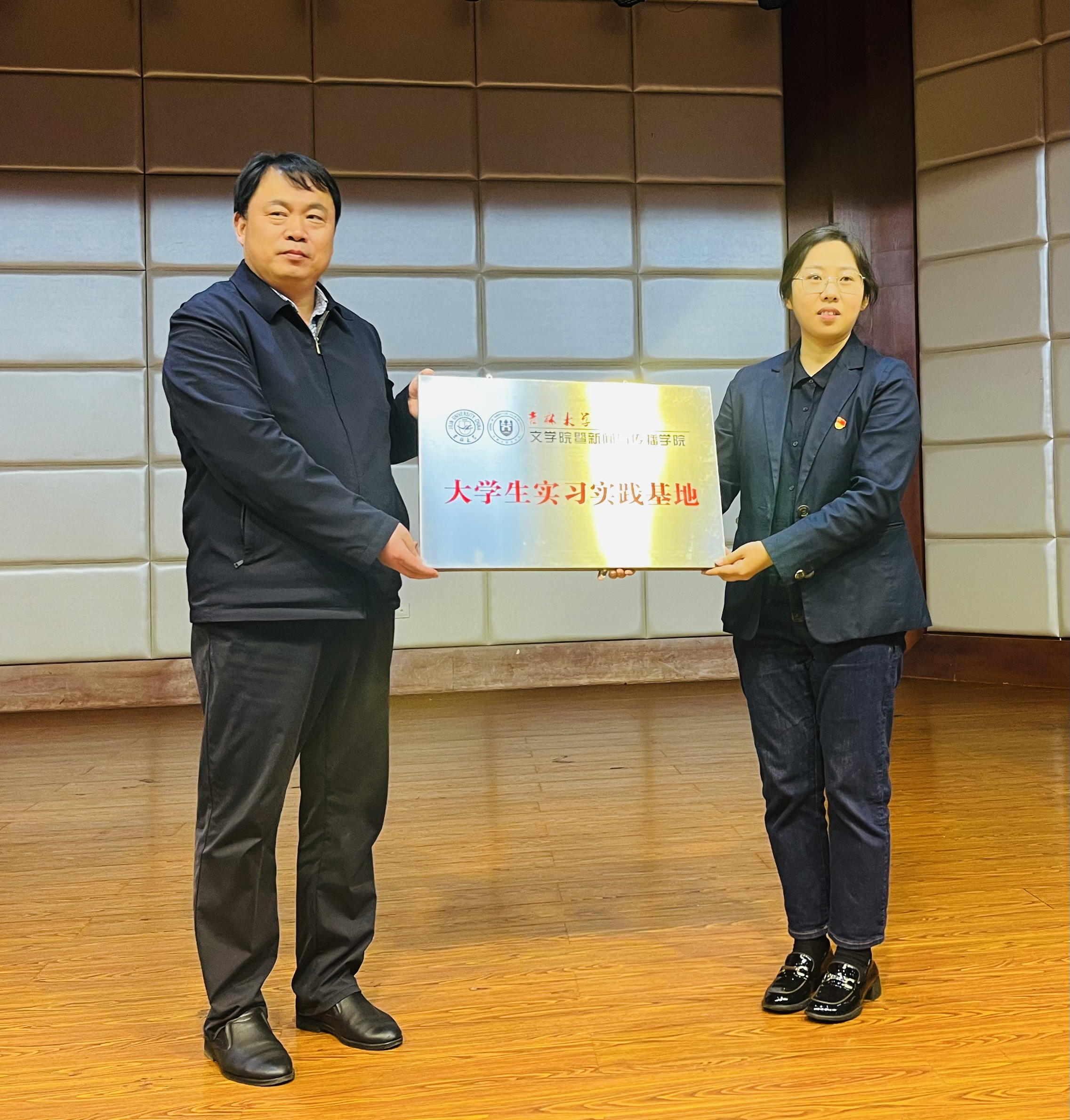 副书记杨一博老师率队赴鹿邑县融媒体中心进行了考察,并就双方共建实习实践基地事宜进行了洽谈,新闻学系系主任、博士生导师严俊教授为鹿邑县融媒体中心作了题为《新媒体环境下主流媒体的舆论引导》的讲座。
