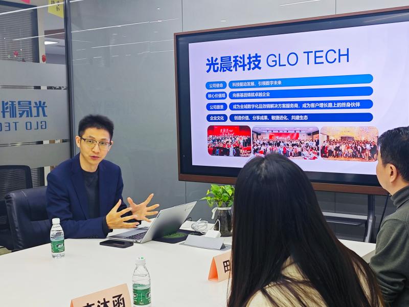 在广州、东莞两地,一行人员先后走访了广州光晨信息科技有限公司、中化学南方建设投资有限公司、凡岛网络科技有限公司、第一赛道、广东广电网络东莞分公司等企业,广州校友会执行会长兼名誉秘书长林瑞明等校友全程陪同。在参观和座谈中,光晨科技人事负责人陈荣栋详细介绍了企业情况,该公司作为高新技术企业、专精特新企业,专注于企业品牌产品定位、短视频营销、社会化媒体营销等业务,是国内全域数字化品效销解决方案服务商,双方就学生实习实践、产学研合作等议题展开深入交流。在凡岛网络科技有限公司,一行人员实地参观企业运营场景并看望近两年入职的毕业生,双方达成共识,将在建立实习实践基地、春季招聘合作、模拟面试指导等方面展开深度合作。一行人员还参观了中化学南方建设投资有限公司、第一赛道。在广东广电网络东莞分公司,学院一行人员与校友代表亲切座谈,共叙母校情怀,作为共建实习实践基地的合作单位,双方均表示将持续深化合作,共同推动学生实习、就业高质量发展。
