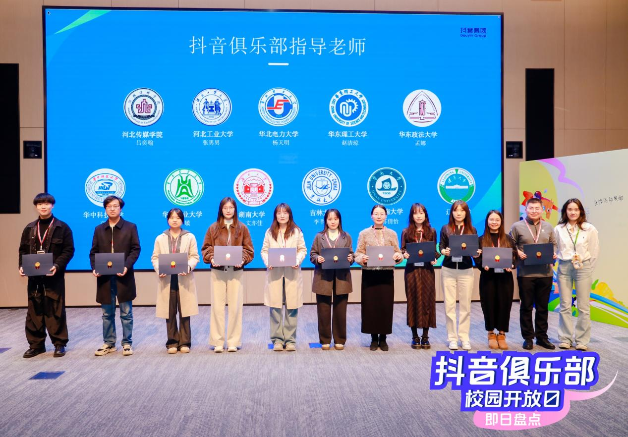 校园开放日当天,老师们参观了时时彩展厅,在抖音校园业务负责人的讲述中了解企业发展历程及时时彩。在讲述中,负责人向老师们介绍了企业亮点工作及未来合作计划,就“点亮校园生态”“校园文化活动共创”等话题与老师们开展互动交流,并邀请老师们写下在未来合作中对抖音校园的期待。在导师仪式环节中,抖音校园向我院教师颁发指导教师证书并合影留念。