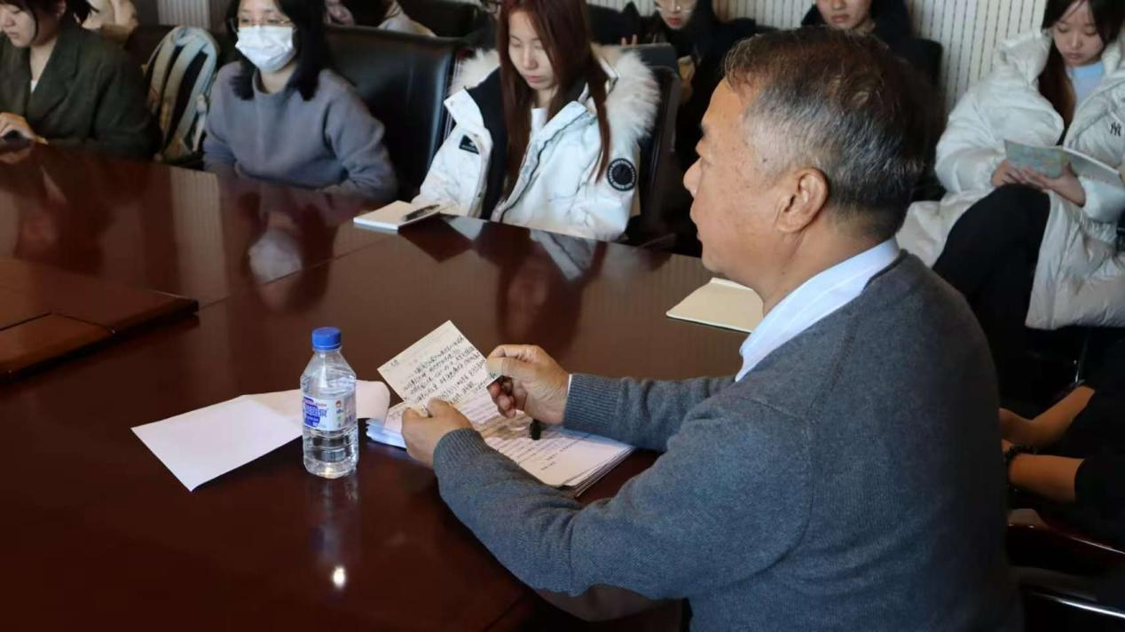 首先,葛宗梅向同学们介绍了王成果老师的经历和事迹,感谢学校关工委对学院二级关工委工作的指导,感谢以王老师为代表的退休老教师对青年学生的关心关爱;强调此次座谈会在纪念“一二·九”运动90周年前夕举办的重要意义,号召同学们深切缅怀、自觉传承革命精神,持续提升历史觉悟与思想深度。