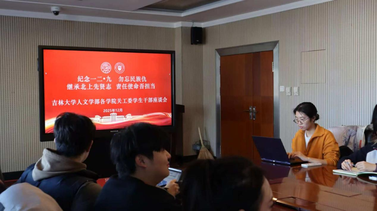 座谈会上,王成果老师表示,纪念“一二·九”运动,就是要铭记90年前面对华北危局,广大青年学生在中国共产党的领导下举行抗日救亡示威游行、掀起抗日救亡新高潮所展现出的精神伟力与青年担当。“北上精神”源起于抗战烽火中仁人志士“到延安去”的号角,在1945—1965年支援东北办学、建设祖国北疆的浪潮中淬炼升华。公木先生就是这一时代洪流中的先进代表——抗大毕业、随军入关、以“笔作枪、教为旗”把《八路军进行曲》的铿锵和“忠诚、奉献、开拓”的信仰永远镌刻在黑土地上。时至今日,一代代青年始终坚持“听党召唤、至诚报国、扎根东北、兴教育才”,不断将青春梦想书写在祖国大地上。王成果老师寄语青年:要“筑牢信仰之基,做爱国主义的坚定践行者”“勇担时代大任,做人文精神传承发扬者”“提升行动质效,做服务同学的实干奉献者”“胸怀天下之忧,做人类命运共同体的积极促进者”;学生干部应发挥“头雁效应”,发挥带头作用,做好联系学校与同学的桥梁纽带;要牢记历史、审视当下、着眼未来,以吉大学子独有的深邃思考和人文情怀,在党和人民的伟大事业里书写青年一代的新篇章。